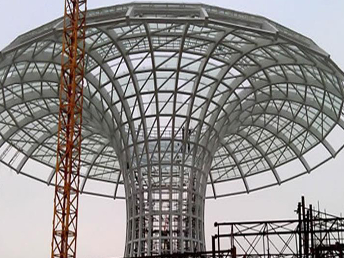 二、球形网架结构因其结构新颖,受力合理,自重轻、用钢量低等优点。如大型体育场馆球形怀化螺栓球网架、公共场馆球形网架、电厂怀化螺栓球网架、水泥工业球形网架、仓储物流球形网架、怀化干煤棚工业球形网架、怀化收费站怀化加油站球形网架、展览中心、影剧院、商场、航站楼、候车厅、工厂怀化车间、仓库、电视塔等球形螺栓球节点网架。国内球形网架结构主要分为:怀化焊接球节点网架及螺栓球节点网架两种。螺栓球节点网架其构件工厂内加工量较大,现场安装便捷,适用于现场工期紧,怀化施工条件、用电量受制约,网架形状复杂、怀化杆件定位困难的异形结构。螺栓球节点球形网架系统基本由怀化杆件、螺栓球、支撑支座等组成。按照节点形式可分为交叉怀化桁架体系、四角锥体系、三角锥体系等。支撑方式多为固定支座支撑。对于大面积、大跨度及有特殊受力或伸缩要求的网架结构可采用橡胶支座、滑移支座、球铰支座等支撑形式,以满足结构自身的受力稳定、均衡,便于内力释放等设计要求。